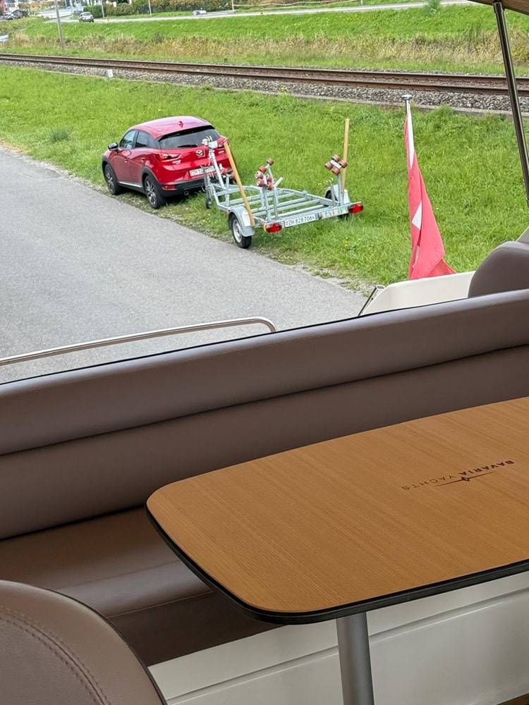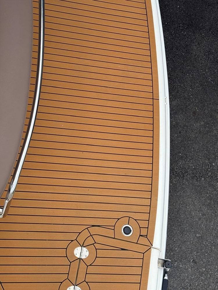 Le revêtement du sol imitation teck a été refait sur mesure par notre partenaire Custompads. Il s’agit d’un revêtement antidérapant en matière EVA, semi permanent, imputrescible et ne chauffant pas au soleil. Plus de détails sur custompads.ch.